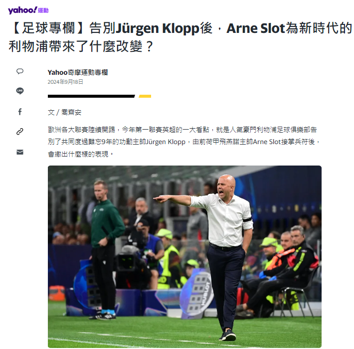 【Yahoo奇摩足球專欄】告別Jürgen Klopp後,Arne Slot為新時代的利物浦帶來了什麼改變?