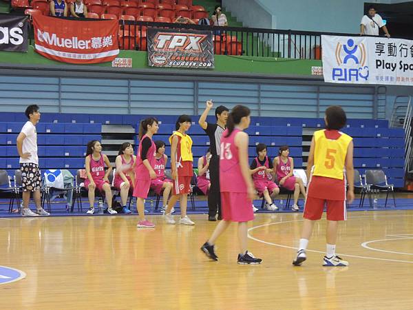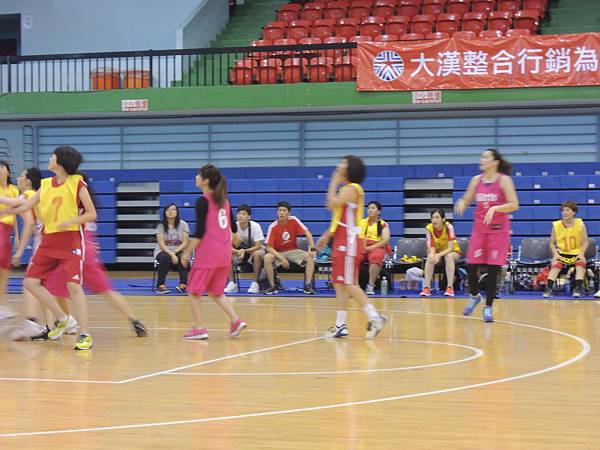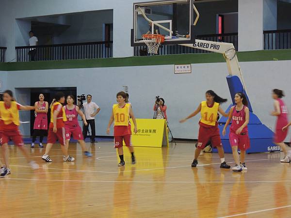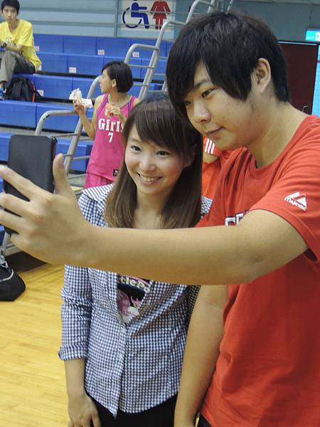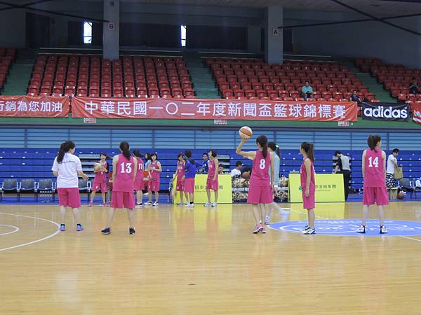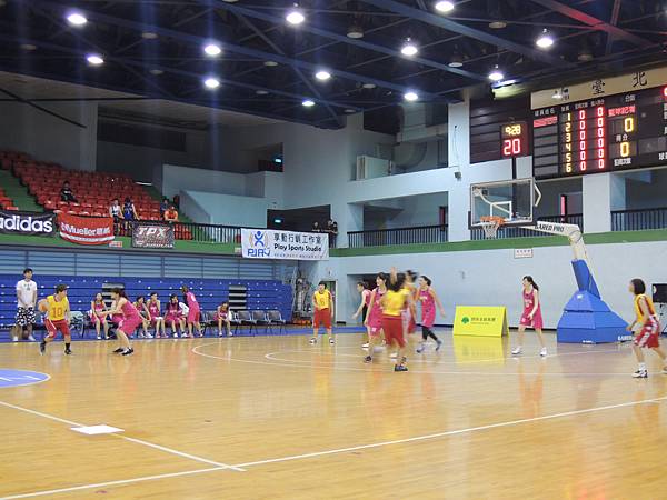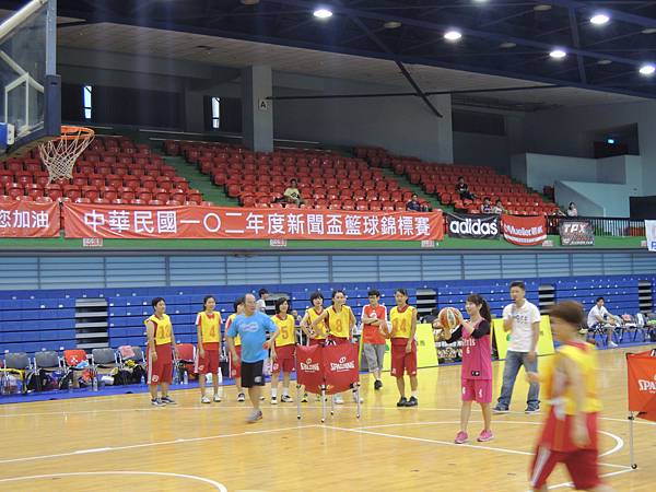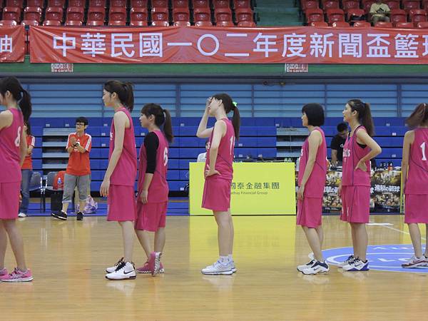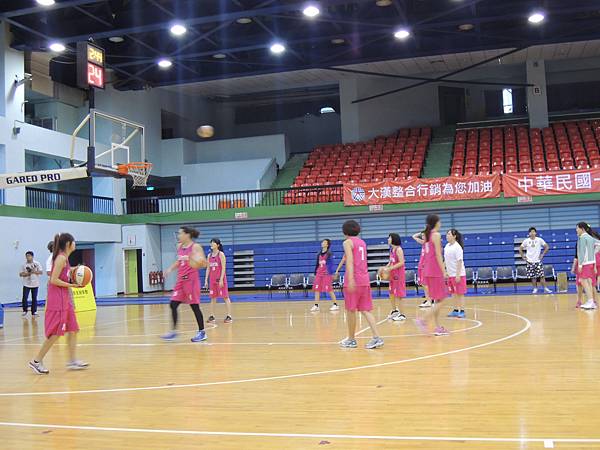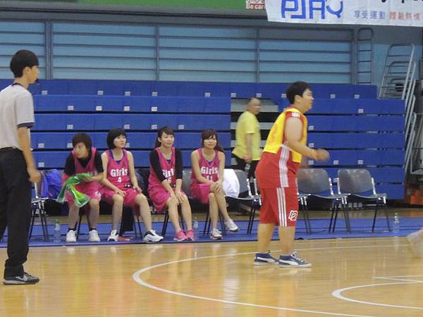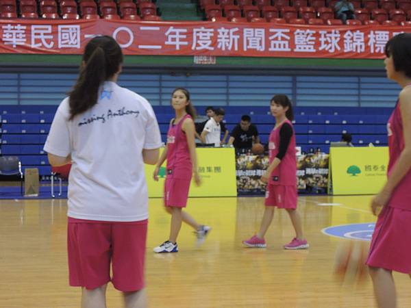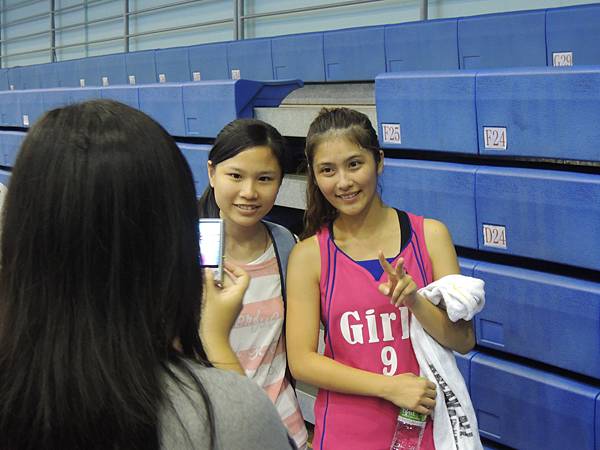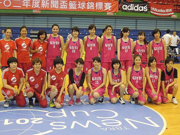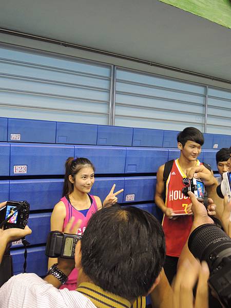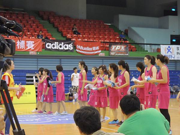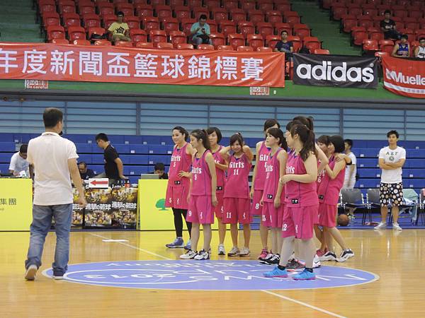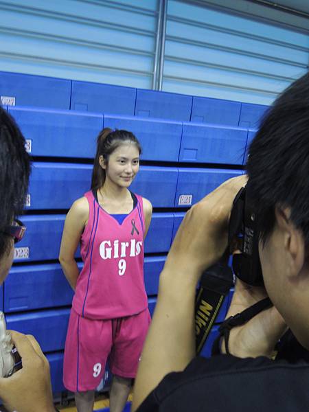 但也由於今年有邀請到當紅啦啦隊Lamigo Girls來參加比賽,在9/9那天據報導可是湧入了三千名觀眾...所以明年開始的新聞盃可能也要收門票了?總之今年就是要把握免費入場的好康觀賞就是。比賽公布的時間表是12點半,但在開賽前,雙方都在場內進行投籃、傳球、上籃等練習,所以一直到45分的時候才正式開賽。當然,美女們的練習時間也依舊是謀殺場下觀眾底片的時間~