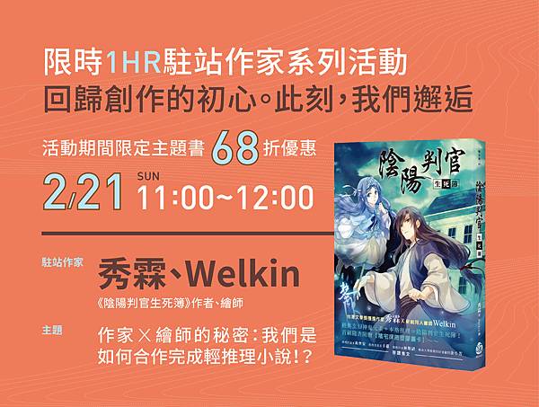 國際書展系列活動三:【駐站作家秀霖、Welkin】作家X繪師的秘密:我們是如何合作完成輕推理小說!?
