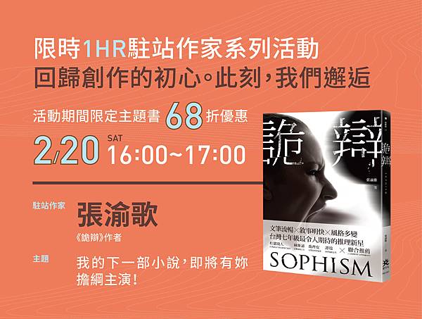 國際書展系列活動二:【駐站作家張渝歌】我的下一部小說,即將有妳擔綱主演!