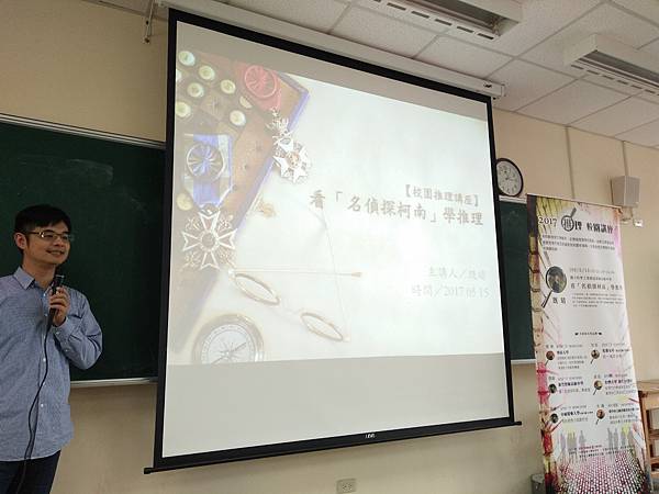 2017年的金車文藝中心校園推理講座,在5/15(一)這天駛向新竹實驗高級中學與台中的中國醫藥大學,由知名台灣推理作家既晴老師帶來兩場不同內容的精采講座。第一場的主題是看「名偵探柯南」學推理,這部家喻戶曉的動畫,現場幾乎所有學生都有看過,老師也特別放了1996年的第一代柯南OP與ED影片讓大家欣賞。《名偵探柯南》至今(到5/10為止)已經連載了996回、漫畫出了92集、卡通也撥出了859集,一年一度的劇場版則拍到了第21集。它是《周刊少年Sunday》最長壽的連載,漫畫銷售累積超過兩億冊,電影也累積超過600億日幣的票房。近期為了慶祝突破銷售兩億冊,小學館也設計了一個可以讓玩家變成柯南漫畫中人物臉的網站企劃。