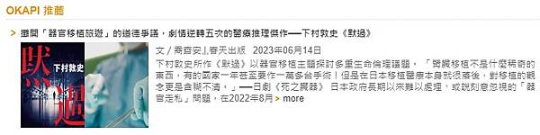標題:攤開「器官移植旅遊」的道德爭議,劇情逆轉五次的醫療推理傑作──讀下村敦史《默過》