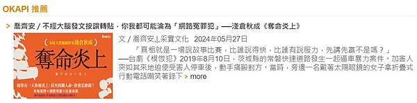 標題:不經大腦發文、按讚、轉貼的你我,可能某一天也會淪為全民公敵的「網路冤罪犯」。──讀《奪命炎上》